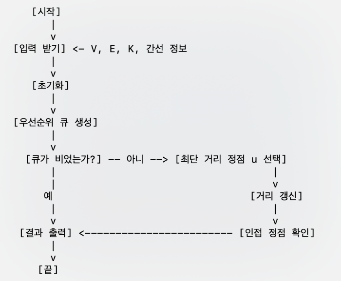 dist[K] = 0 # ์์ ์ ์ K์ ๊ฑฐ๋ฆฌ๋ฅผ 0์ผ๋ก ์ค์